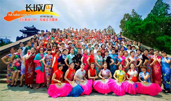 图:近千身着旗袍女士齐聚丛台。邯郸旗袍分会供图